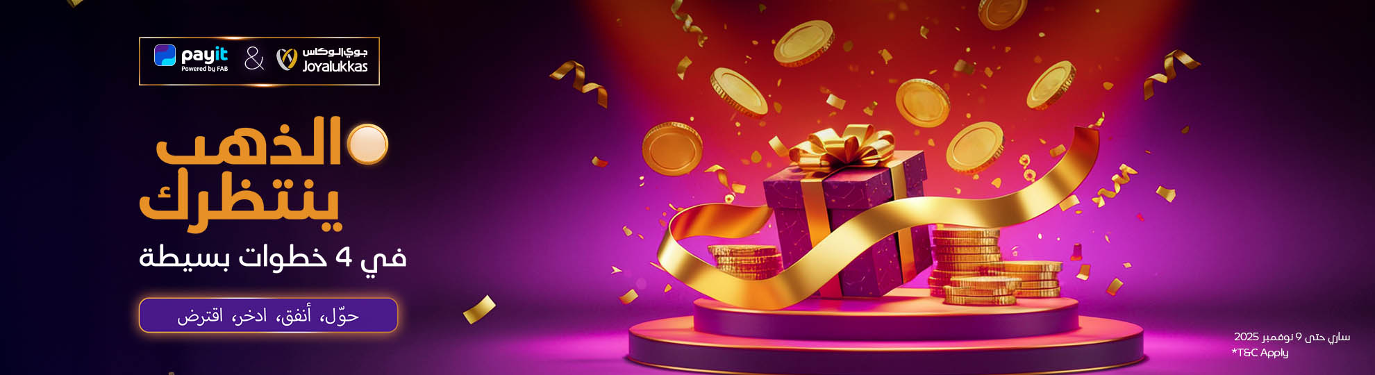- الموظفون لدى Payit وبنك أبوظبي الأول غير مؤهلين للمشاركة.