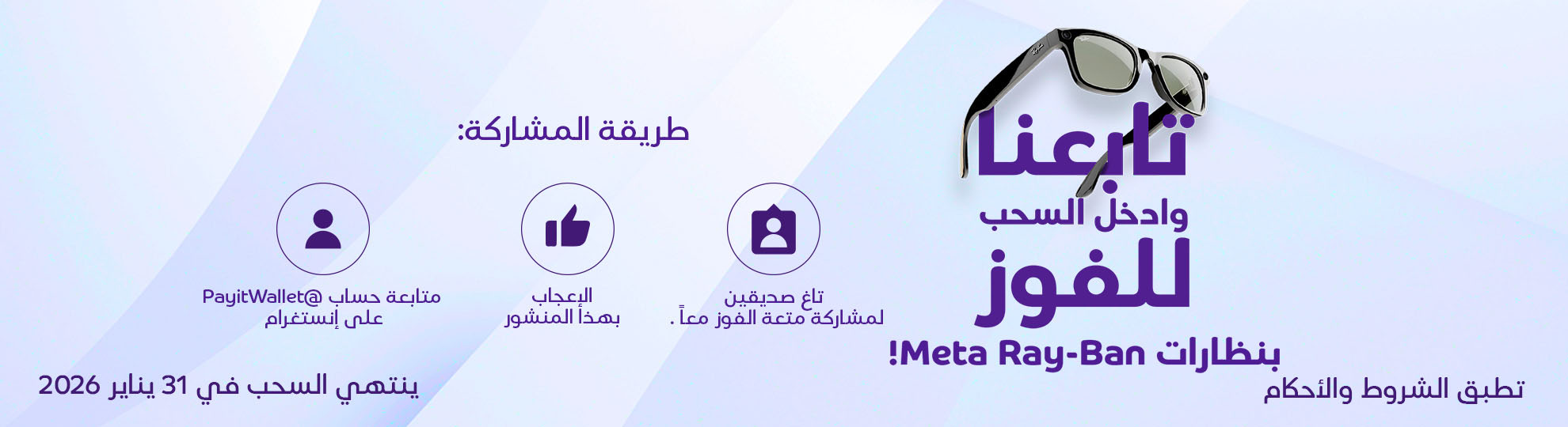 • من خلال المشاركة في هذه الحملة، يوافق العميل على السماح لـ Payit بنشر اسمه وعرضه عبر قنواتها الرسمية، بما في ذلك الموقع الإلكتروني وصفحات التواصل الاجتماعي والبيانات الصحفية وغيرها من الوسائل الترويجية.