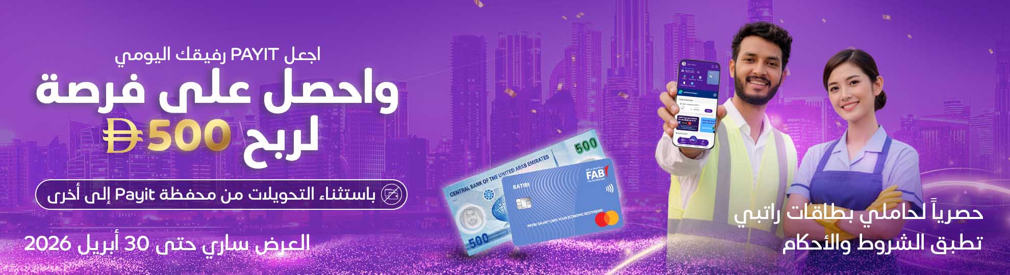 - لا يحق لموظفي بنك أبوظبي الأول (FAB) أو Payit أو الشركات التابعة لهما أو شركائهما أو أي أطراف ذات صلة المشاركة في هذه الحملة.