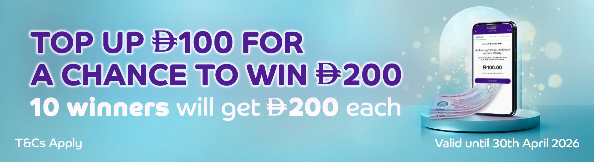 This promotional campaign is organized by Payit (powered by First Abu Dhabi Bank) to encourage wallet top-ups among eligible Payit users. Customers who top up their Payit wallet with ê 100 or more during the campaign period will automatically enter a raffle draw for a chance to win ê 200.